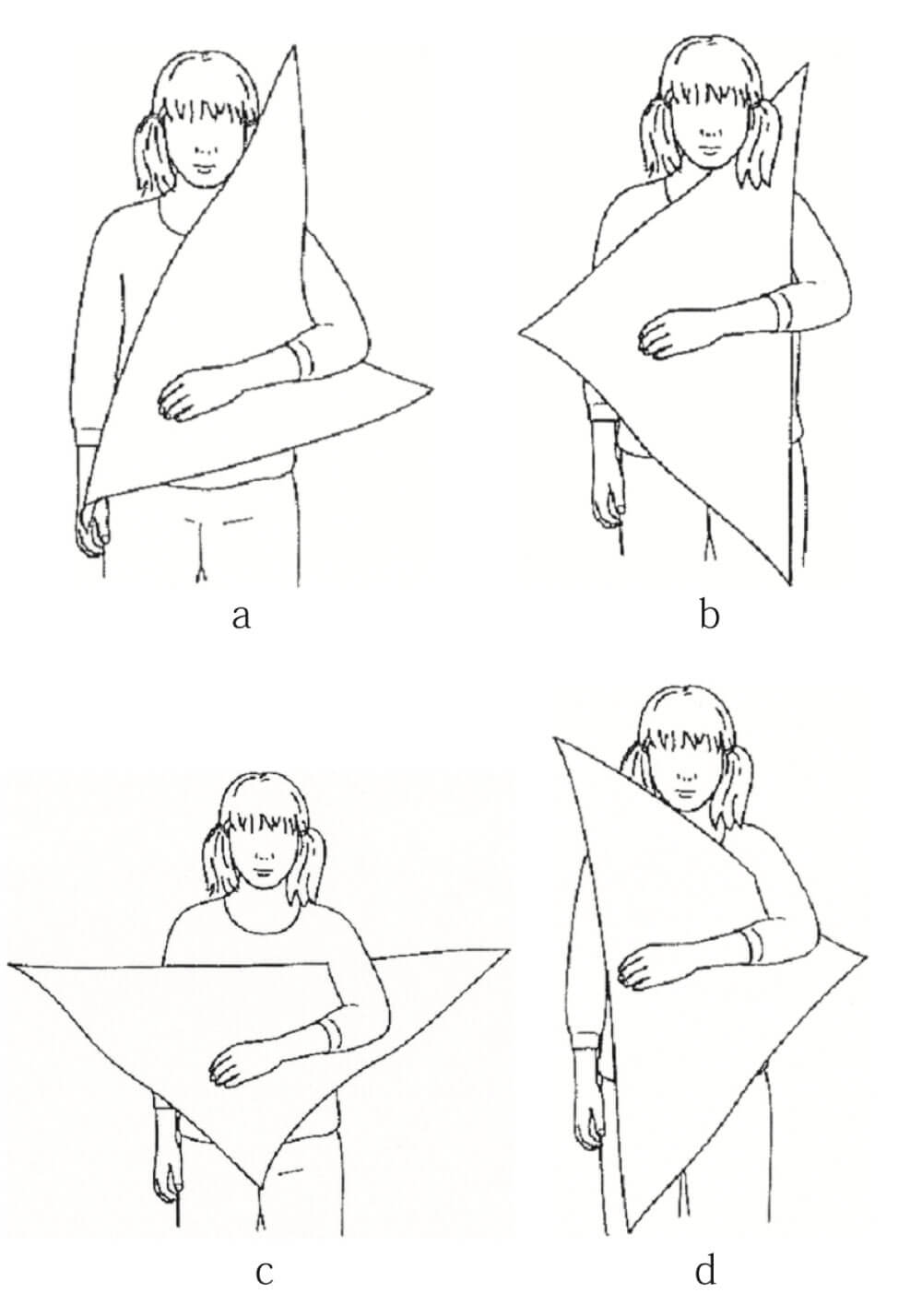 三角巾のあて方で正しいのはどれか。2つ選べ。