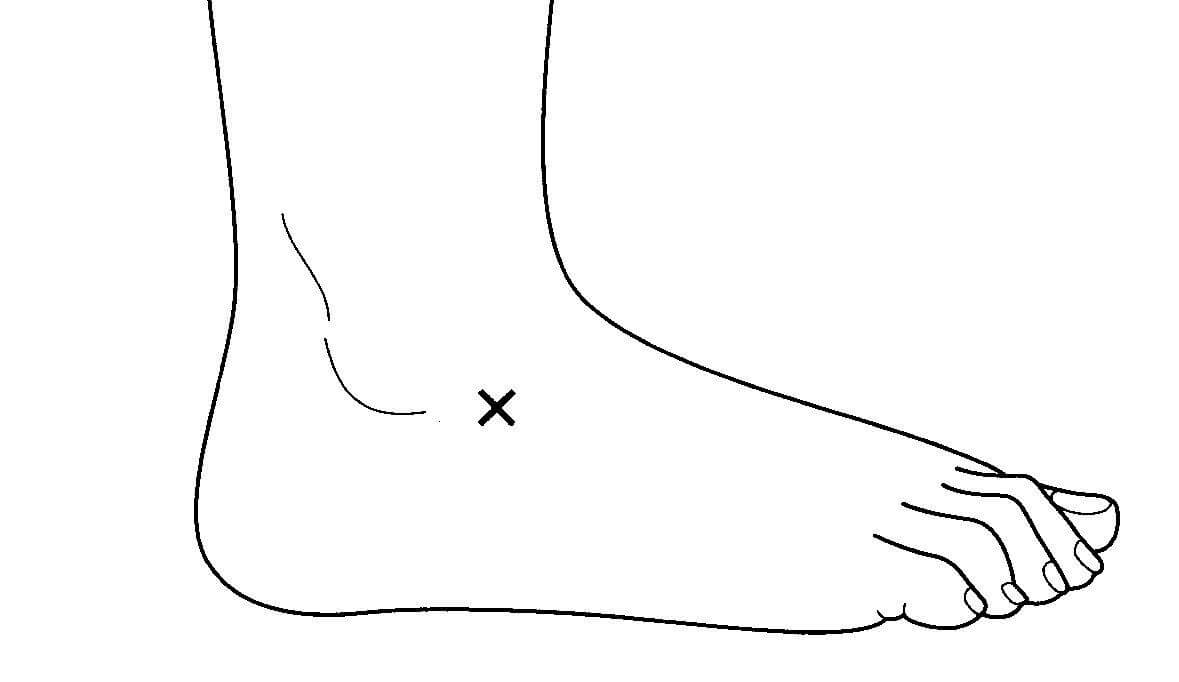1.〇 正しい。足根洞症候群は、図に示す部位(足根洞)に圧痛がある。