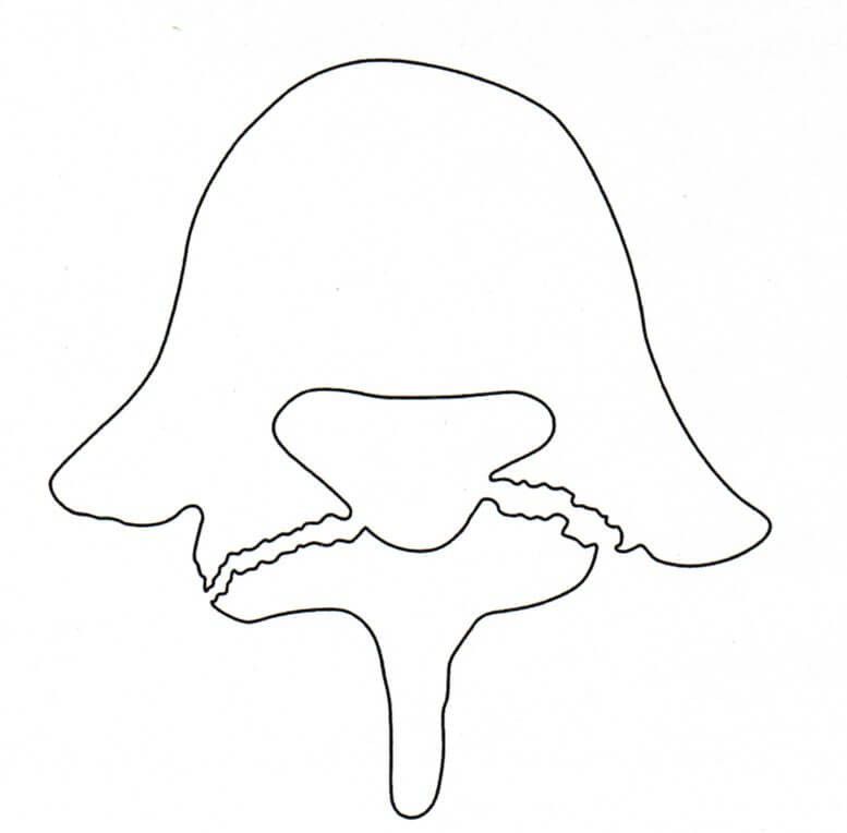 問題108.16歳の男子。柔道歴6年。高等学校の柔道部に所属している。2か月前から背負い投をかける際に腰に痛みを感じていたが放置していた。3日前から痛みが強くなり来所した。上体を後方へ伸展させると疼痛の増強を認めた。近医を紹介し、CT検査を受けたところ、第5腰椎に図のような所見が得られた。