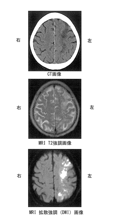 1.〇 正しい。脳梗塞が考えられる診断である。なぜなら、新しい脳梗塞は、CTではやや低吸収域、MRI拡散強調画像では鮮明な高信号城として描出されるため。