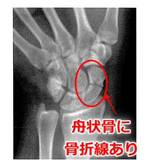 ・受傷時の単純エックス線写真:舟状骨骨折骨折。